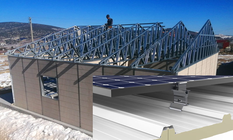 Aslında daha önce biraz bahsetmiştik ama biraz daha detaylı incelemek gerekli. Eğer çatınızda Günısı gibi ağır malzemeler olacaksa veya güneş paneli döşemeyi düşünüyorsanız bu isteklerinizi prefabrik ev alırken muhakkak satıcıya belirtin. Çünkü sonradan hüsrana uğrayabilirsiniz. Mesela çatınıza güneş paneli döşetmeyi düşünüyorsunuz ve çatı kaplaması olarak sandviç panel tercih ettiniz; eğer kullanılan sandviç panelde güneş panellerinin sabitleneceği özel bir hat yoksa mecburen panelleri vida ile delmeniz gerekir buda çatının su yalıtımını önemli ölçüde bozar. Yine Günısı kullanmayı düşünüyorsanız çatınızın iskeletini ve taşıyıcı H Profillerin daha güçlü olması gerekir. Bu sebeple isteklerinizi iyi belirleyin ve satıcı ile hepsini paylaşın ki sonradan sıkıntı yaşamayın.